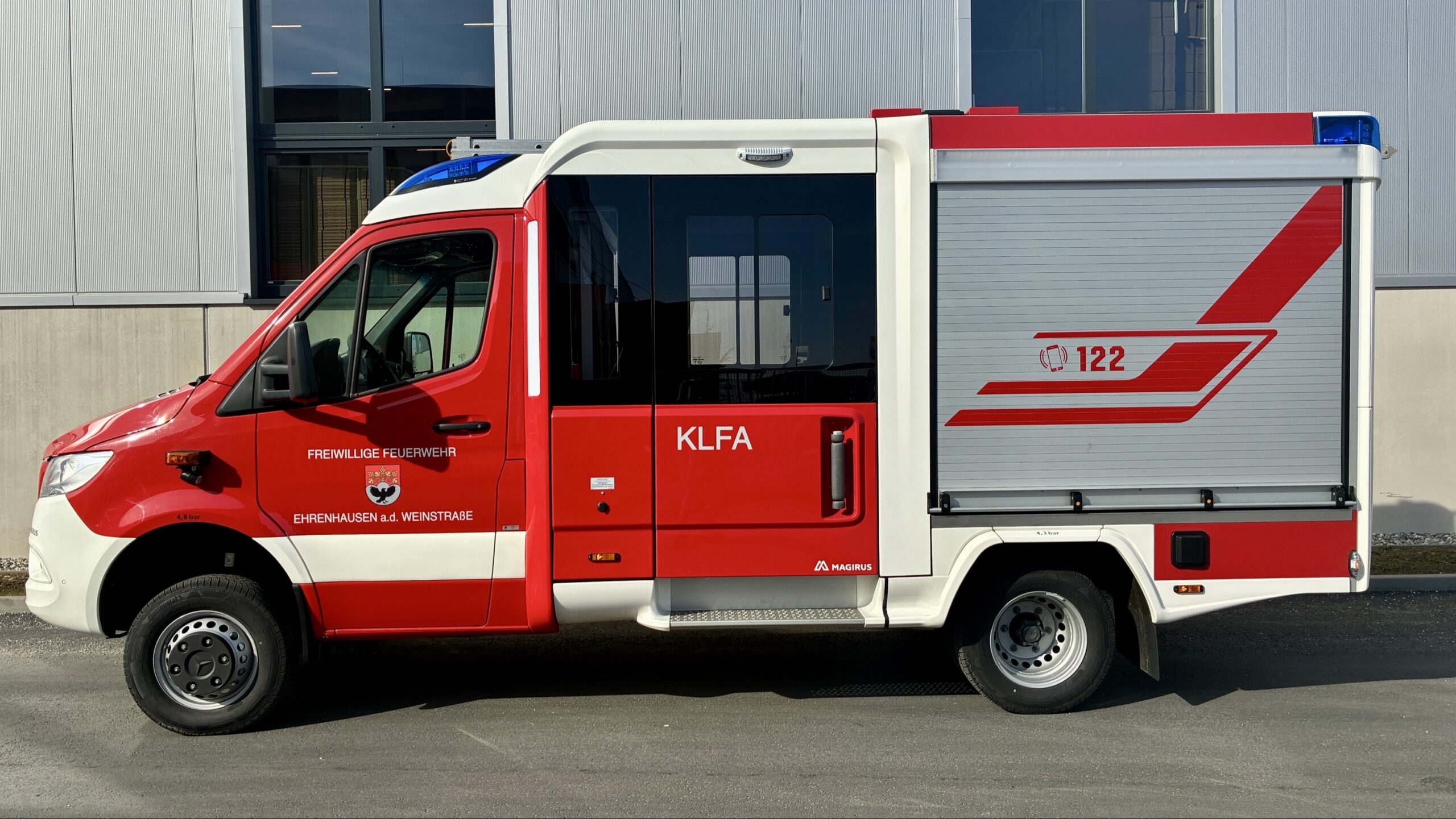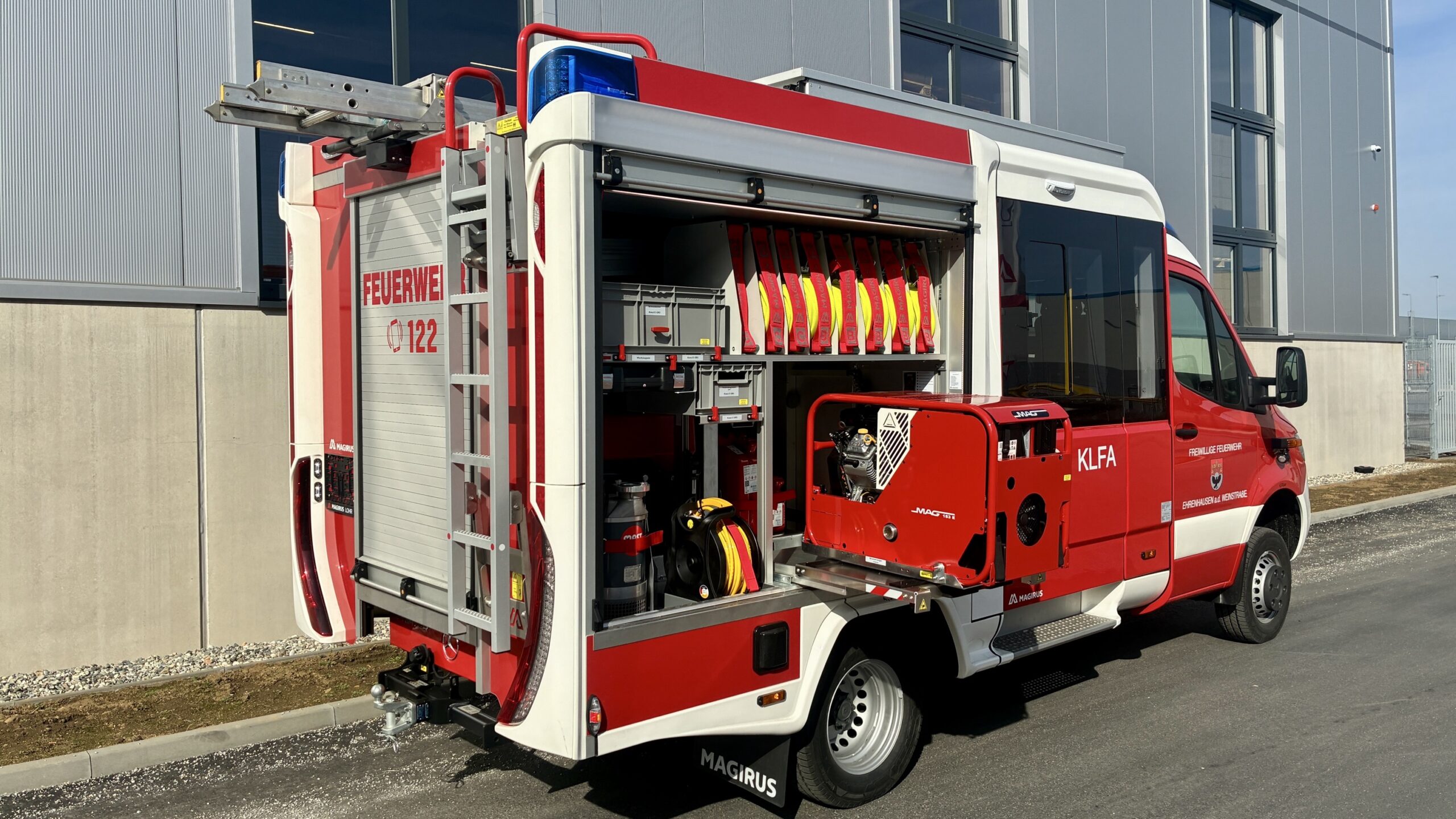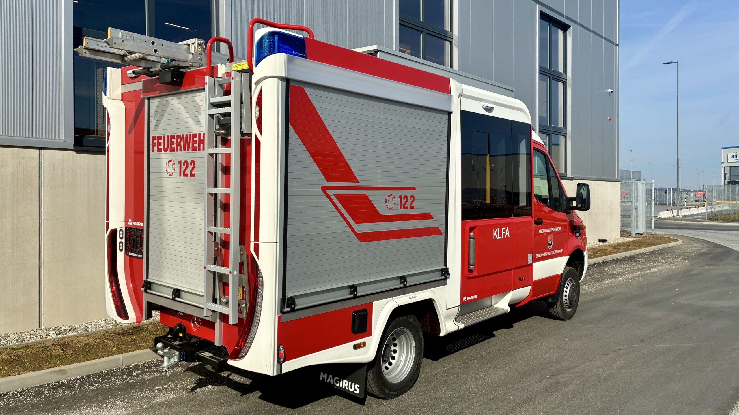- LED Umfeldbeleuchtung am Aufbau und über den Mannschaftsraumtüren