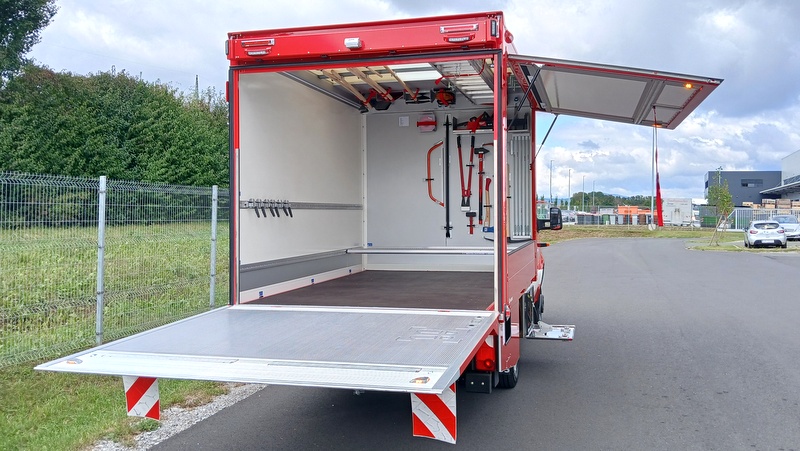 - Ladebordwand für rasche Be- und Entladung der Rollcontainer