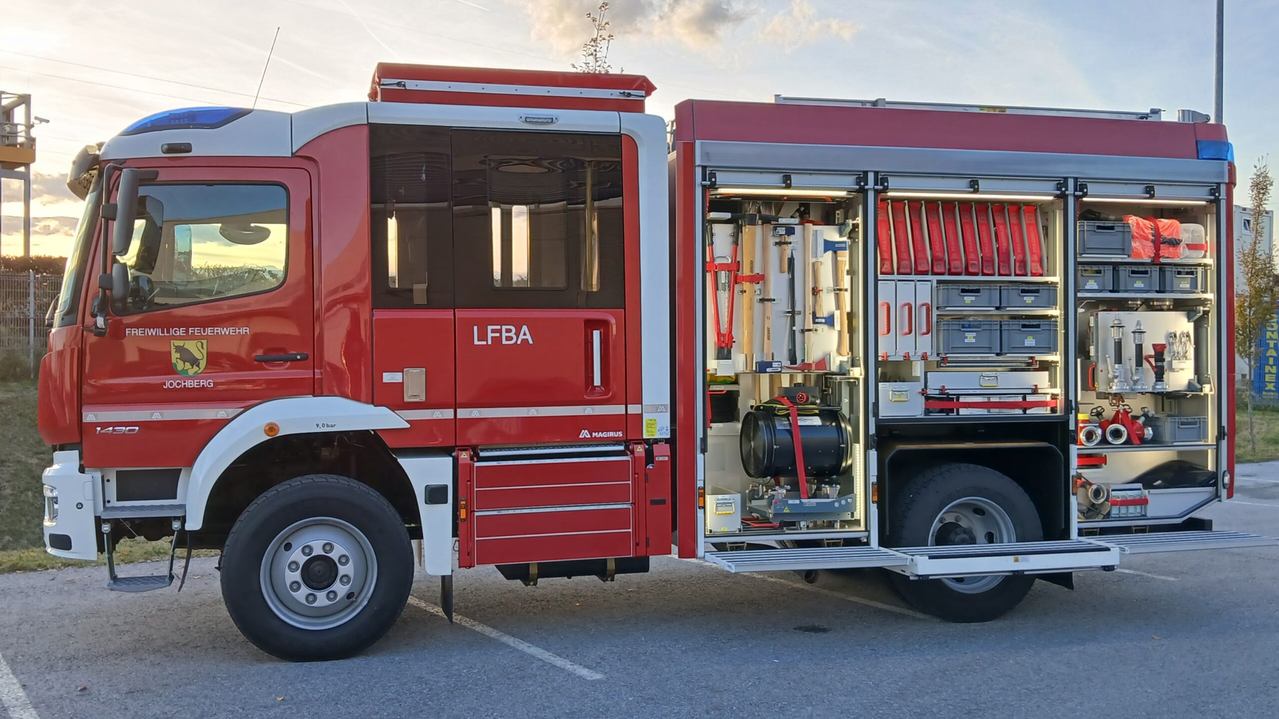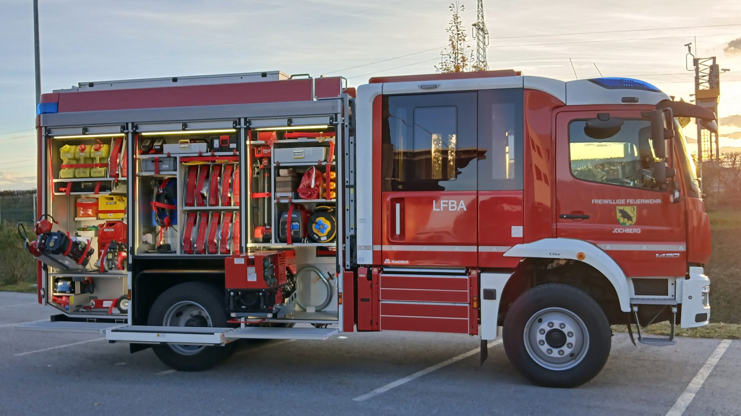 - LED Umfeldbeleuchtung am Aufbau und über den Mannschaftsraumtüren