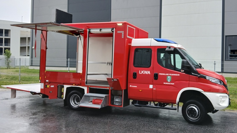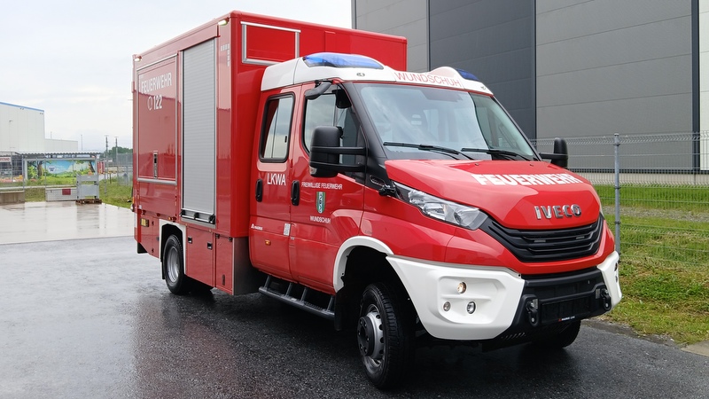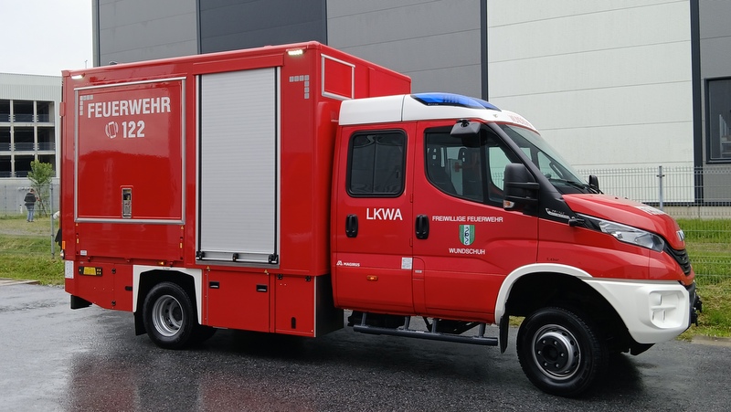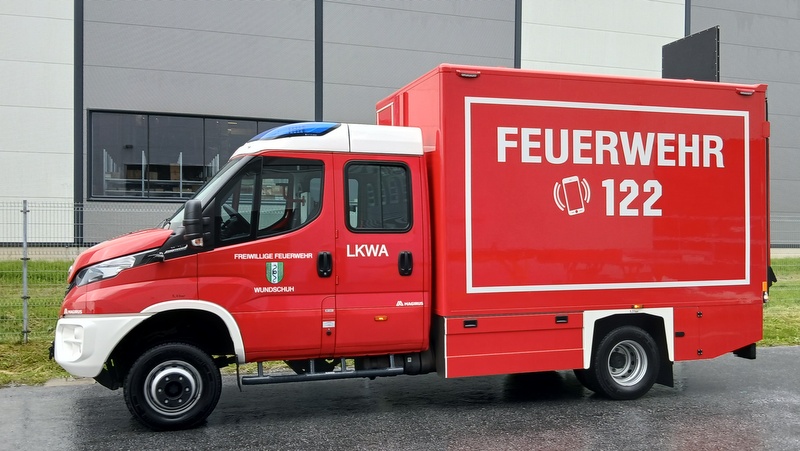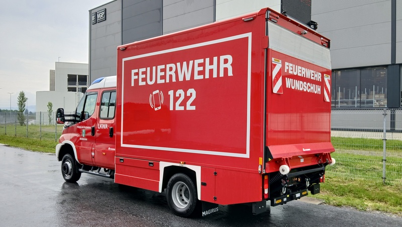 - Magirus RKL auf dem Fahrerhausdach, blaue LEDs mit Designverkleidung